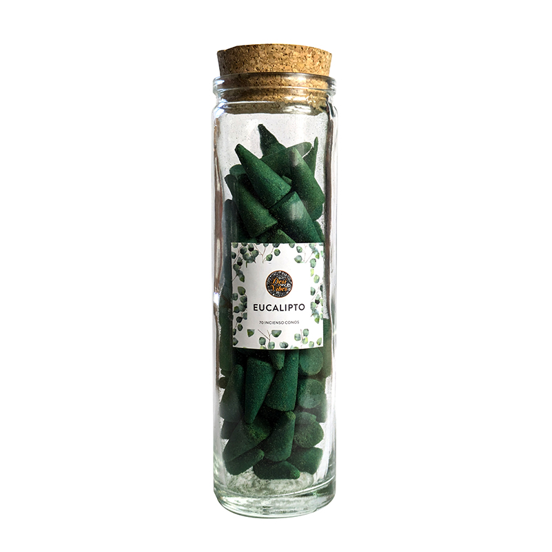 Inciensos ConoIncienso en cono Eucalipto Desi Vibes 70 conos en frasco de vidrioValorado con 0 de 5$2.990 Agregar