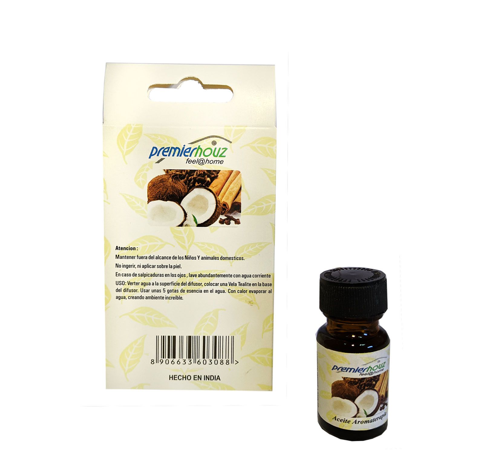Aceite de aromaterapia con de Coco Canela y Clavo marca Premierhouz, para difusores.