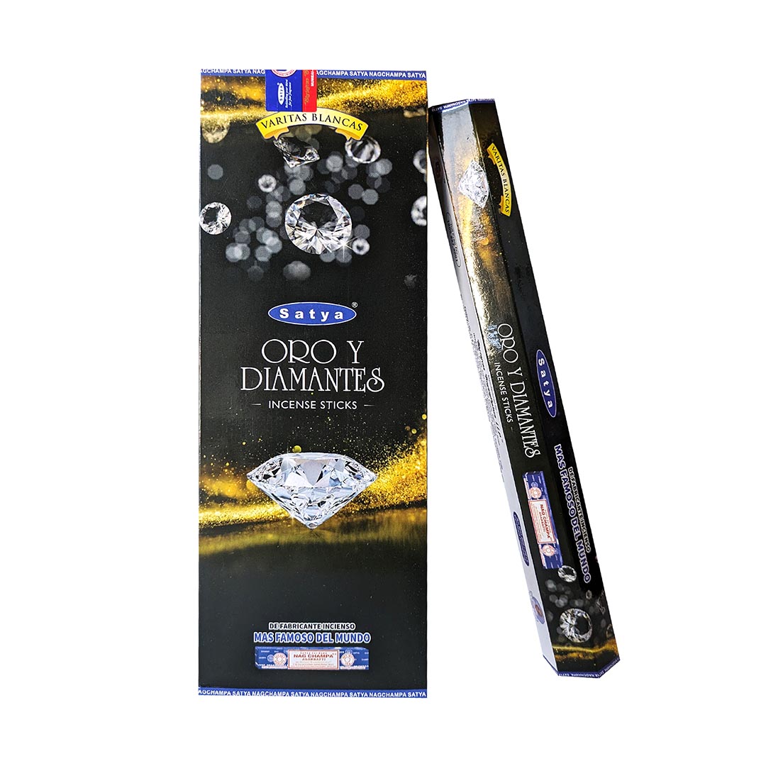 Incienso hexagonal premium de Oro y Diamante de la marca Satya (misma marca del Nag Champa azul tradicional).