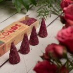 «La fragancia de los pétalos de rosa es dulce y suave con notas florales que traen una sensación de armonía y amor. Los pétalos de rosa son conocidos por sus propiedades para promover la relajación y reducir el estrés, así como para ayudar a mejorar la calidad del sueño. Enciende un cono de incienso de pétalos de rosa para disfruta de su aroma mientras meditas o te relajas».