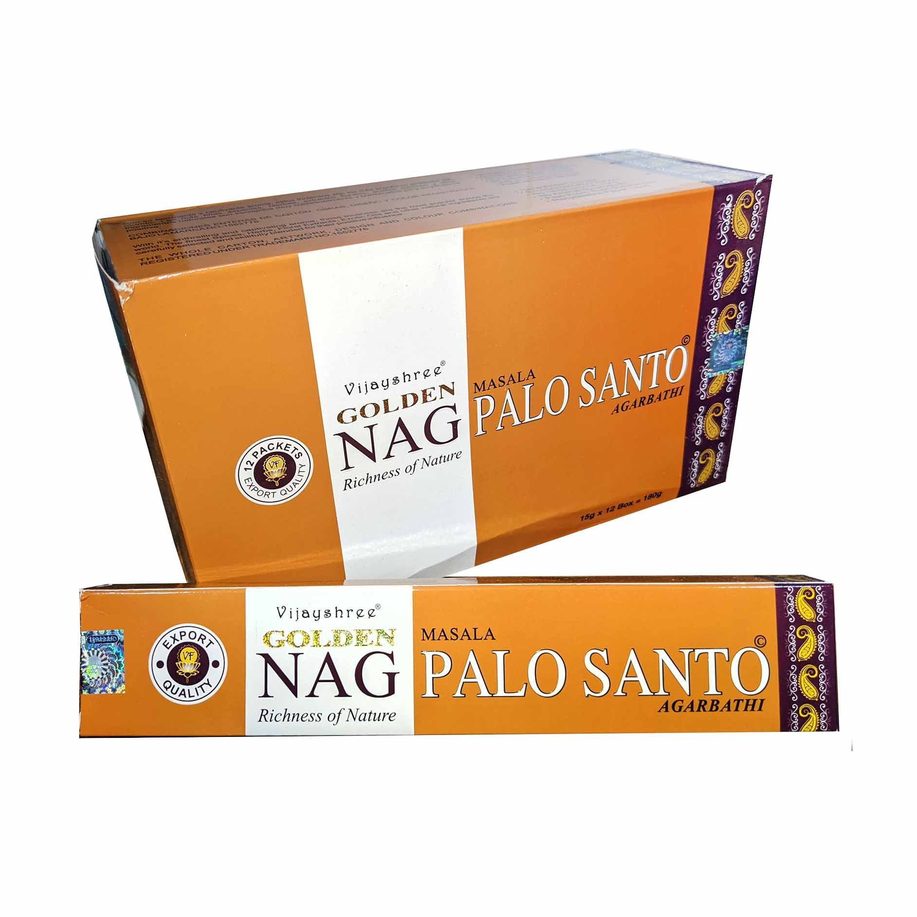 Incienso Golden Nag Palo Santo de Vijayshree. Varitas de Masala.