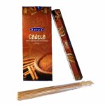Incienso hexagonal premium con aroma a Canela de la marca Satya (misma marca del Nag Champa azul tradicional).