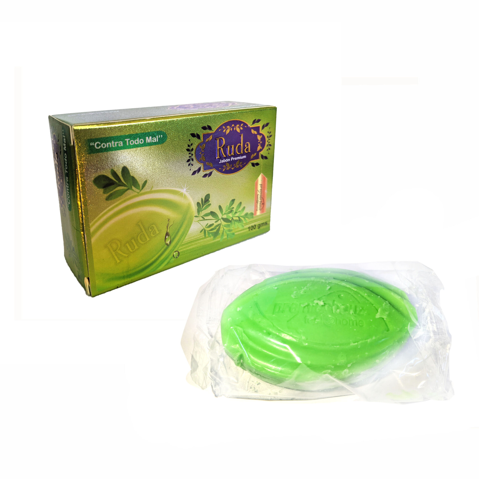 Jabón Premium sin glicerina de Ruda marca Premierhouz. Peso neto: 100 gramos. Propósito: Contra todo mal Producto hecho en la India.