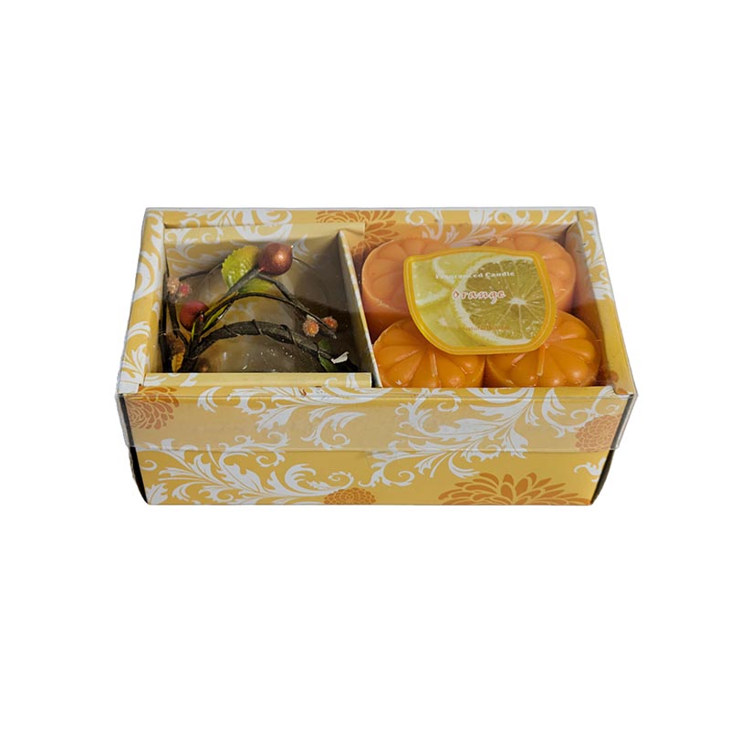 Kit de velas Naranja + porta velas decorativo de vidrio
