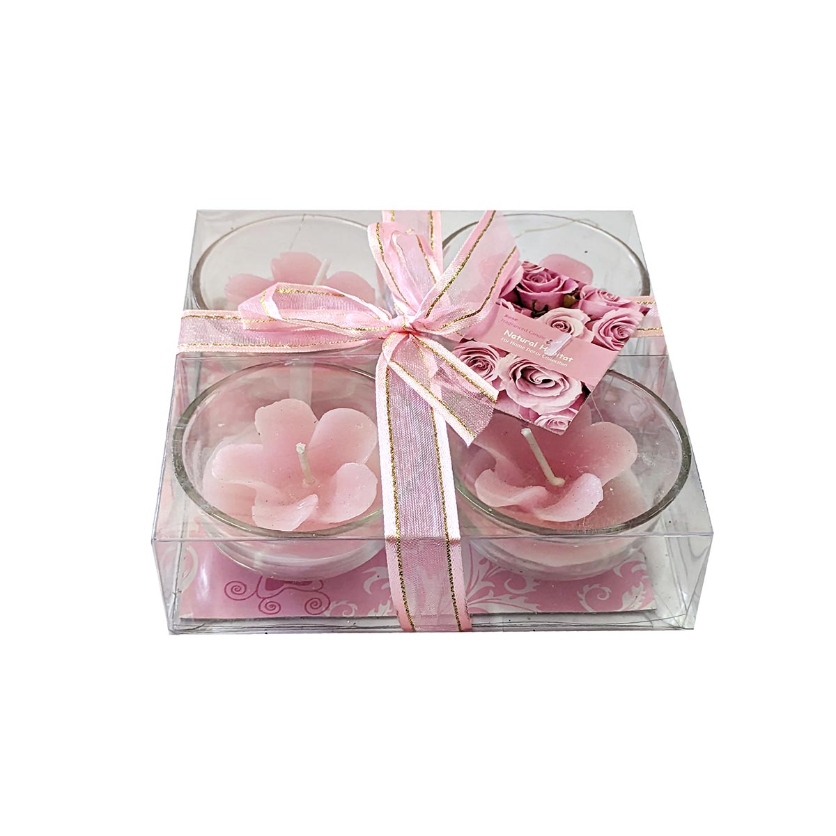 Pack de 4 velas decorativas de flor aroma Rosa
