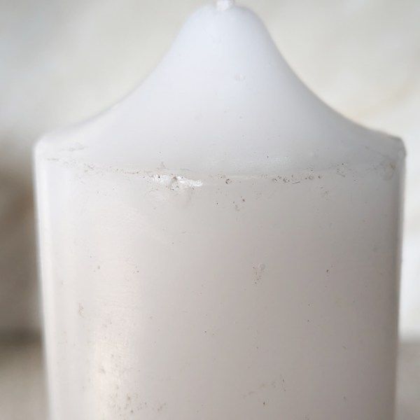 Estos cirios en remate pueden tener manchas, polvo, o cortes. Todos poseen mecha y pueden encenderse.