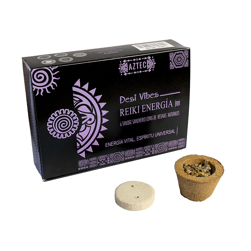 Sahumerio Reiki Energía Desi Vibes Carbón con resina   Contenido: 6 conitos con resina Marca: Desi Vibes Propósito: Energía Vital. Espíritu Universal